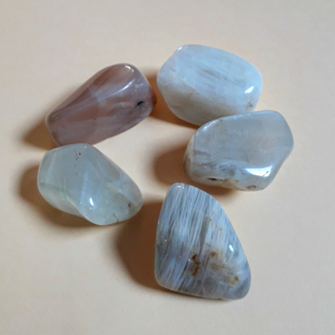 Mesečev kamen je kamen novih početaka, snažno povezan sa mesecom i intuicijom. Posebno dobar za uspostavljanje harmonije i hormonske ravnoteže, muške i ženske energije. Dobar za PMS, trudnoću, porođaj, nesanicu. On je i muški kamen, stišava prenagljene reakcije, dovodi u ravnotežu srce i um, a da se pri tome ne izgubi nežnost. On može da otključa sva osećanja u ljudskom biću. Tokom punog meseca ne treba ga nositi.